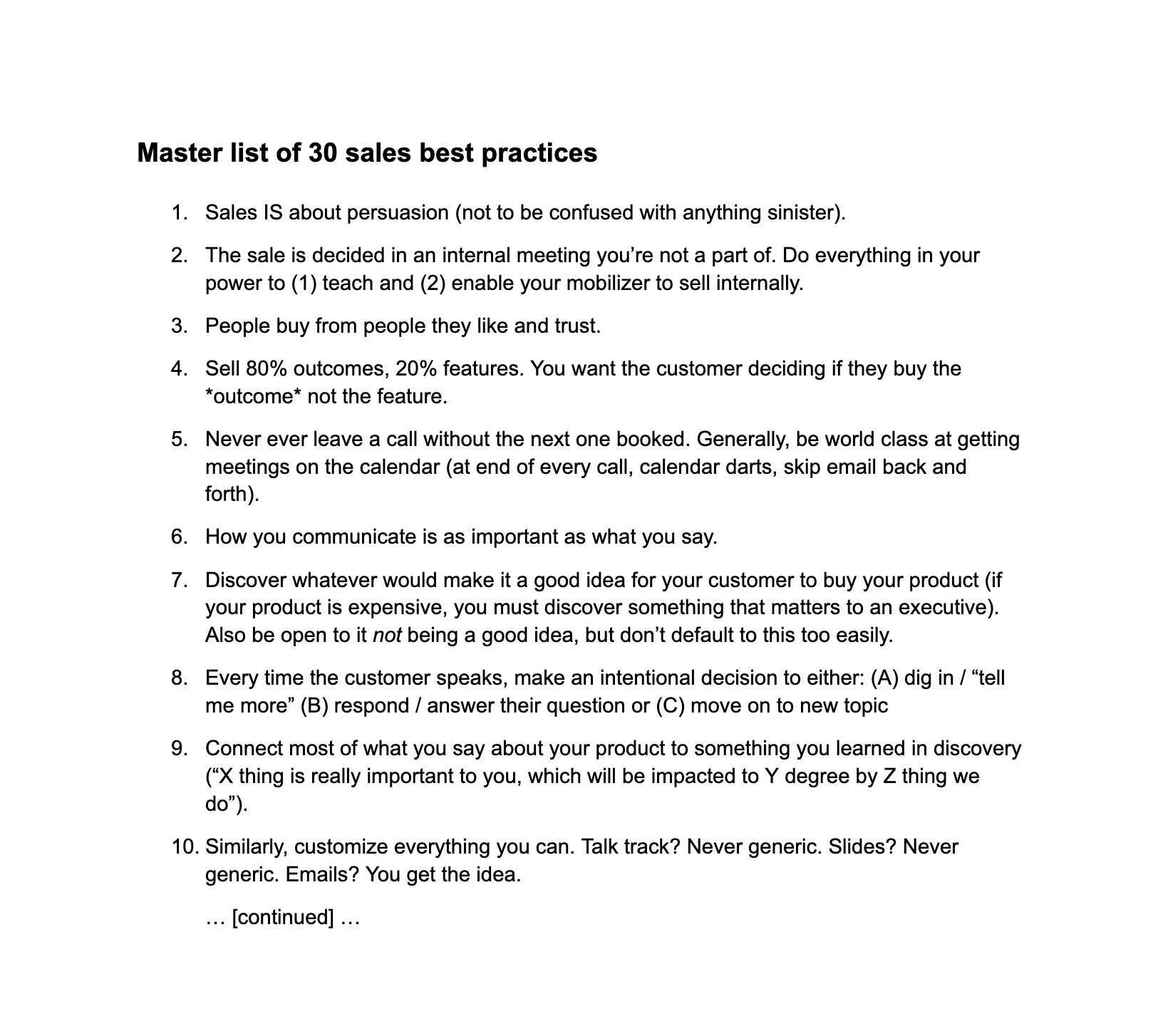 I was really lucky to be a part of a world class sales org at Wunderkind (spent 5 years, 2 promotions ultimately to Senior Strategic AE). Our Head of Sales ran weekly development meetings that completely changed the trajectory of our selling skills, the team's performance, and our careers.I then got recruited by two former Wunderkind colleagues to be the first sales hire at Tropic, where I ultimately got promoted AE > Head of Sales > VP > CRO. I put my own spin on the weekly training session with the same strong results we saw at Wunderkind.My training covers literally every single topic The Seller needs to maximize their personal win rate (how buyers buy, discovery, pitching your product, talking about money, urgency, etc).My sessions are conversational. Your team will talk A LOT in these sessions. No deck monologues here.And I'll leave behind playbooks and resources for every topic we cover.